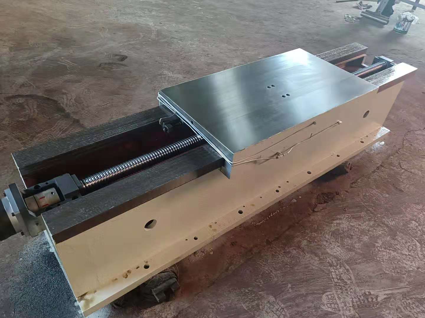 機械滑臺是組合機床,對頭銑床,對頭鉆床以及其他專用機床的提供進給動作。機械滑臺由床身,滑板,絲杠,變速箱等組成。其結構簡單,便于維修。機械滑臺工作原理是滑板在床身上做縱向運動,因其絲杠傳動,再加上變速箱的作用。可獲得快慢等多種運行速度。隨著近年來機械工業(yè)的發(fā)展。在原有的機械滑臺基礎上,演變出數(shù)控機械滑臺,即在原來機械滑臺的基礎上。把普通絲杠換成滾珠絲杠,在鑄鐵的導軌面上鑲嵌直線導軌。把變速箱電機換成伺服電機加減速機。使滑臺可以快速進退。利用滾珠絲杠和線軌獲得較高的精度。